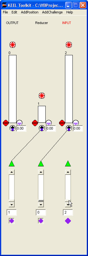 This shows the impact of driving a Modified Value of one position ("INPUT") through an intermediary position ("Reducer") with a fixed limited importance, that then provides input to a third position ("OUTPUT").