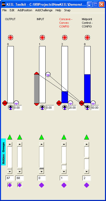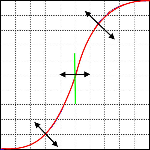 There are two configuration parameters that can control the shape of the overall curve. The Concave-Convex Config (Input index 1) controls the shape of the curve. Setting this value to 50 will create a straight line. The other configuration parameter, Midpoint Control - CONFIG (Input index 2) controls the midpoint of the S curve.